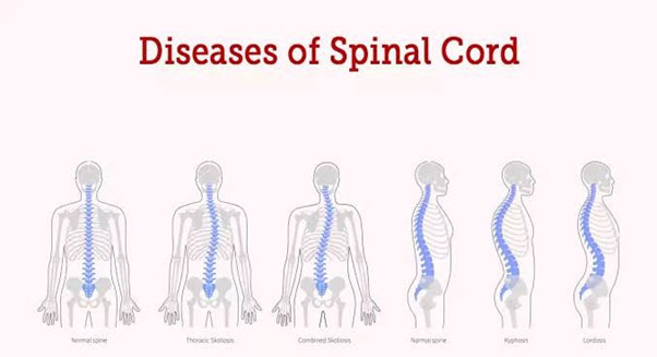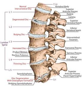 spine has five regions: the cervical (neck), thoracic (chest), lumbar (lower