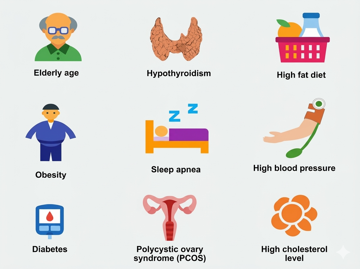 Fatty liver mainly develops due to wrong food habits, overeating, junk and oily foods, soft drinks, and a sedentary lifestyle. These causes disturb Agni (digestive fire), leading to the formation of Apakva Anna Rasa (poorly digested food essence).